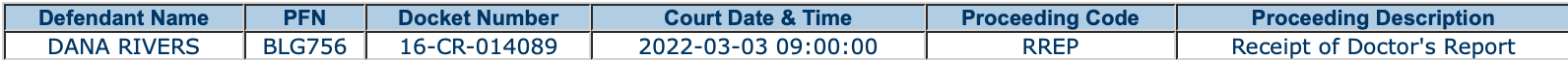 February 17, 2022: The court STILL has not received the Doctor’s report, the purpose of which is to assess Rivers’s competence to stand trial and also the state of his mental health at the time of the offense (his plea is not guilty by reason of insanity). To the best of my knowledge, the dates of the readiness hearing and the jury trial have not changed. They are, at the moment, still scheduled for July 2022.